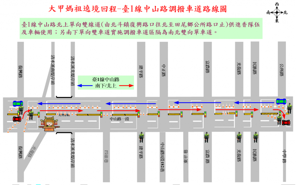 轉知彰化縣警察局北斗分局為維護115年4月23、24日「大甲鎮瀾宮天上聖母遶境進香活動」行經路線圖,詳如附件